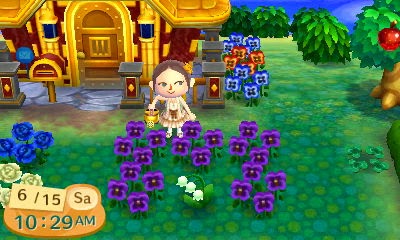 Just water your plants daily, and watch them grow into. You can grow flowers in your Animal Crossing: New Leaf village. This will give them space to cross-pollinate and do some flower breeding, with the hybrid flowers growing in the gaps.