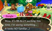 Animal Crossing Bangle. It is not known when the content on this page will be released, only that this content exists in the assets. Bangle is a peppy tiger villager from the Animal Crossing series.