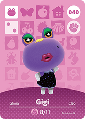 Gigi Animal Crossing. The following is a list of items that make good gifts for Gigi, who likes Ornate, black items and dislikes Sporty items. Scopri maggiori informazioni su Gigi, tra cui disponibilità nei vari videogiochi, oggetti preferiti e molto altro.